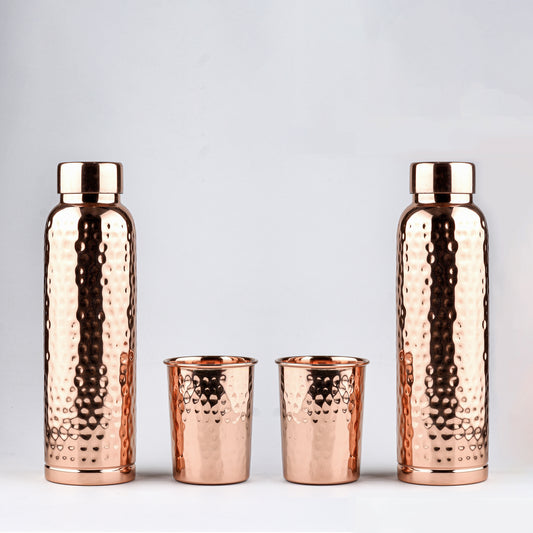 Hammered Copper Gift Set - 2 Bottles & 2 Mugs